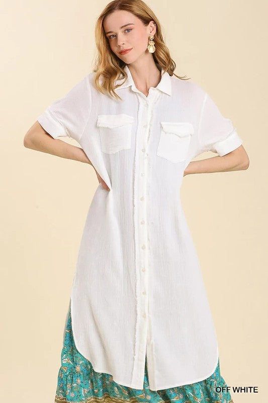 Midi Gauze Button-Up Dress
