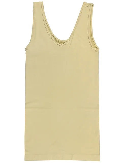 This cami can be worn two ways. One side is a V neck, and the other side is a scoop neck.
